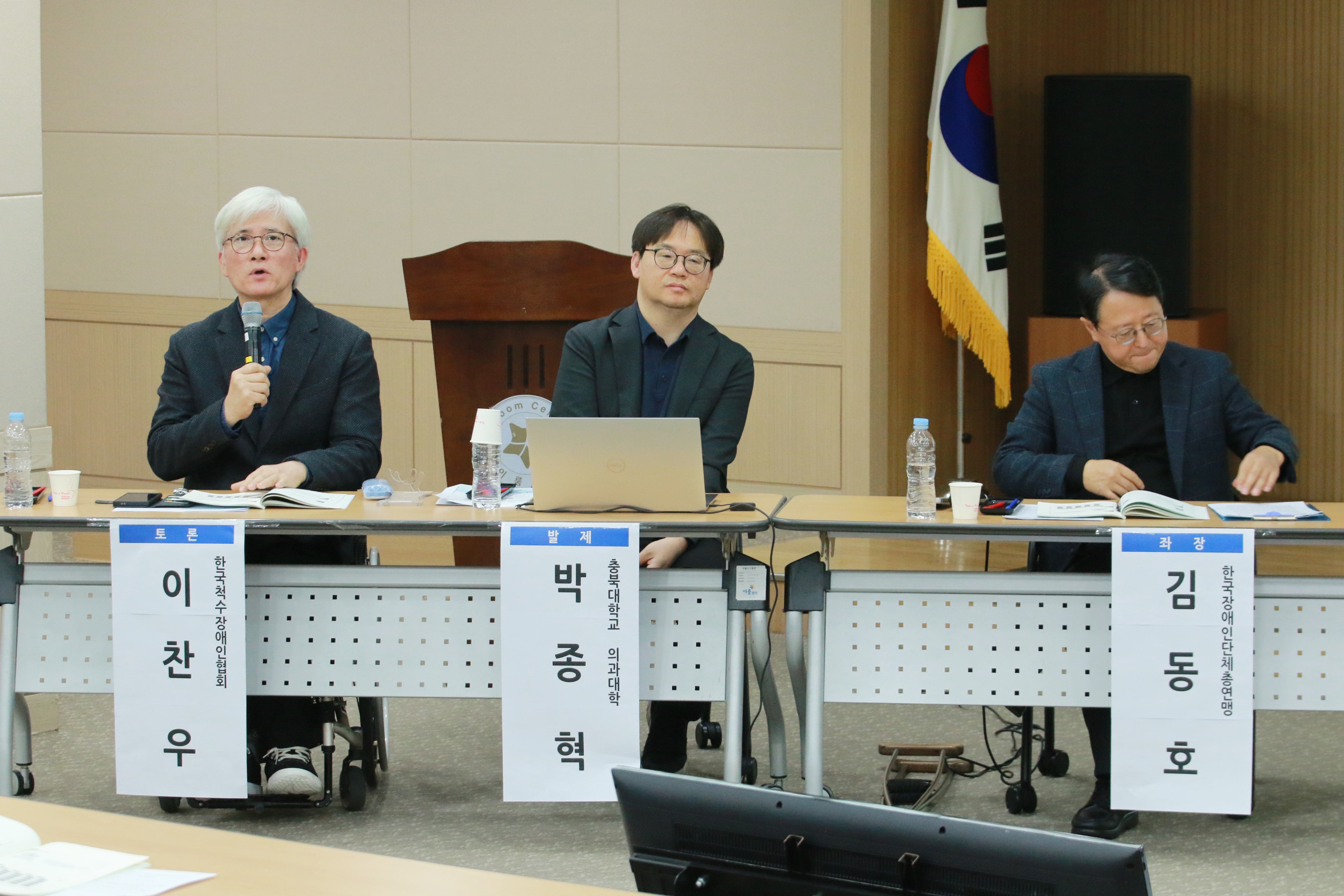 장애포용적 보건의료 거버넌스 구축 방안 토론회 - 일시: 2025년 12월 5일(목) 10:00 - 12:00 - 장소: 여의도 이룸센터 누리홀 - 주최: 한국장애인보건의료협의회, 한국장애인단체총연맹, 김예지 국회의원, 김선민 국회의원, 남인순 국회의원 - 참석자: 박종혁 이사장, 최용준 편집위원장, 이찬우 대외협력이사, 김소영 총무기획이사, 사무국 직원 |