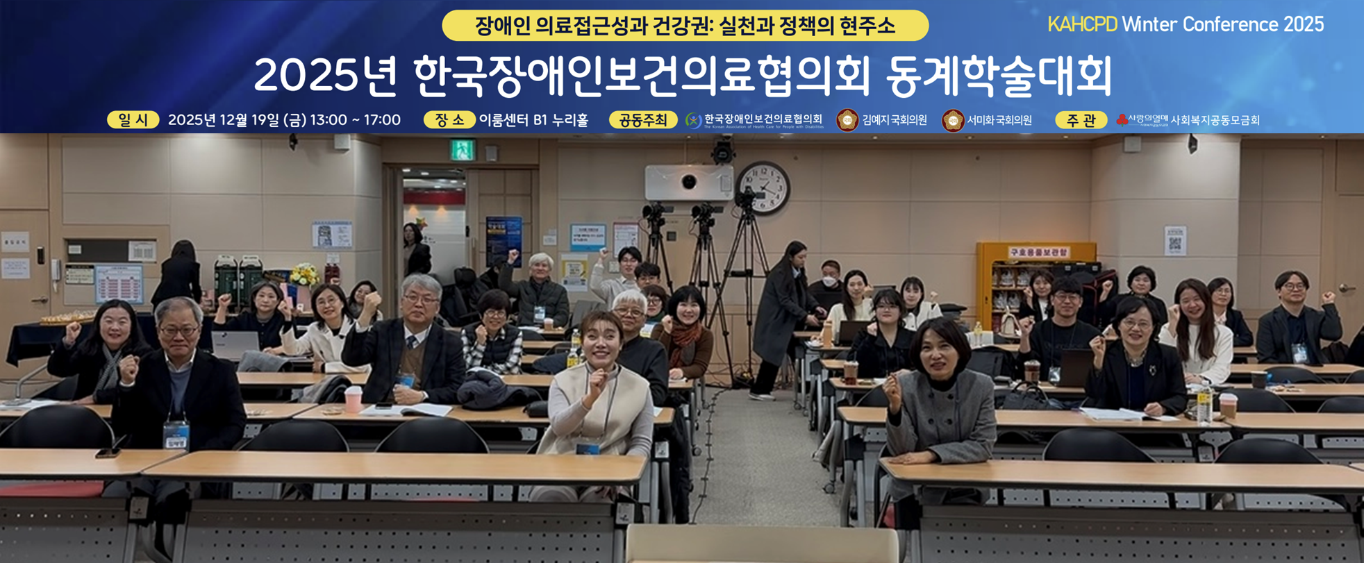 > 공지 및 행사 > 행사 앨범| 2025년 한국장애인보건의료협의회 동계 학술대회 By 관리자 / 2025-12-23 AM 10:46 / 조회 : 42회 |